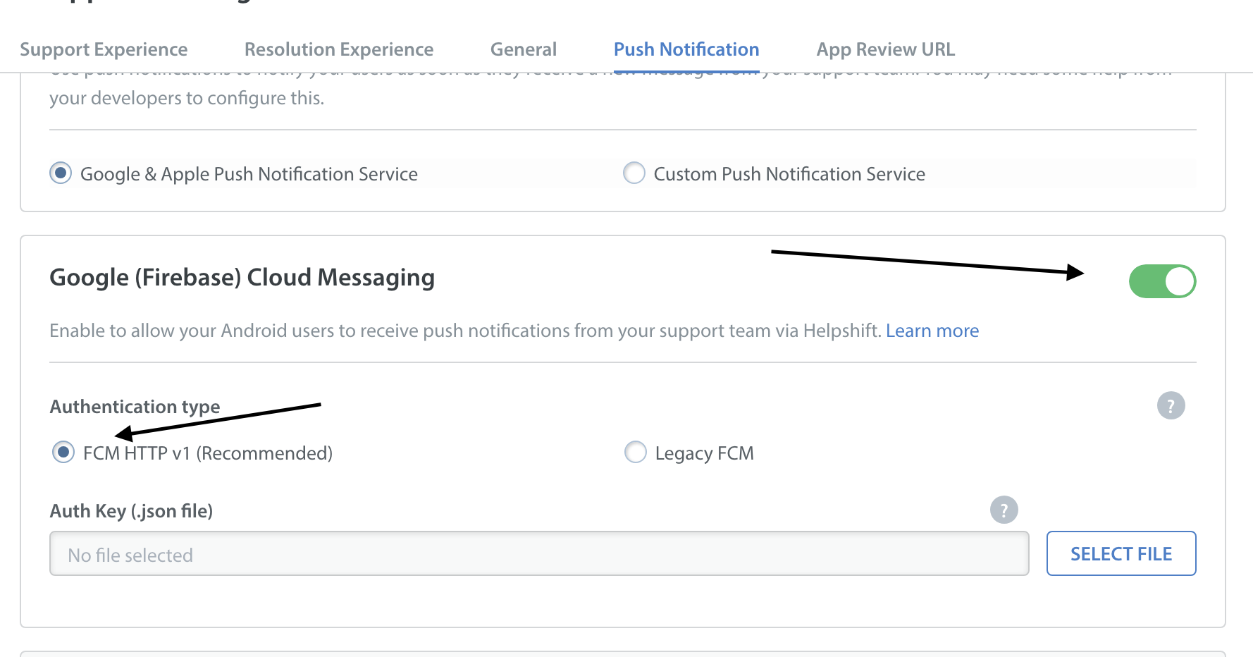 For FCM users, the Auth key file can be found at your Firebase API Console. For more information, click here.